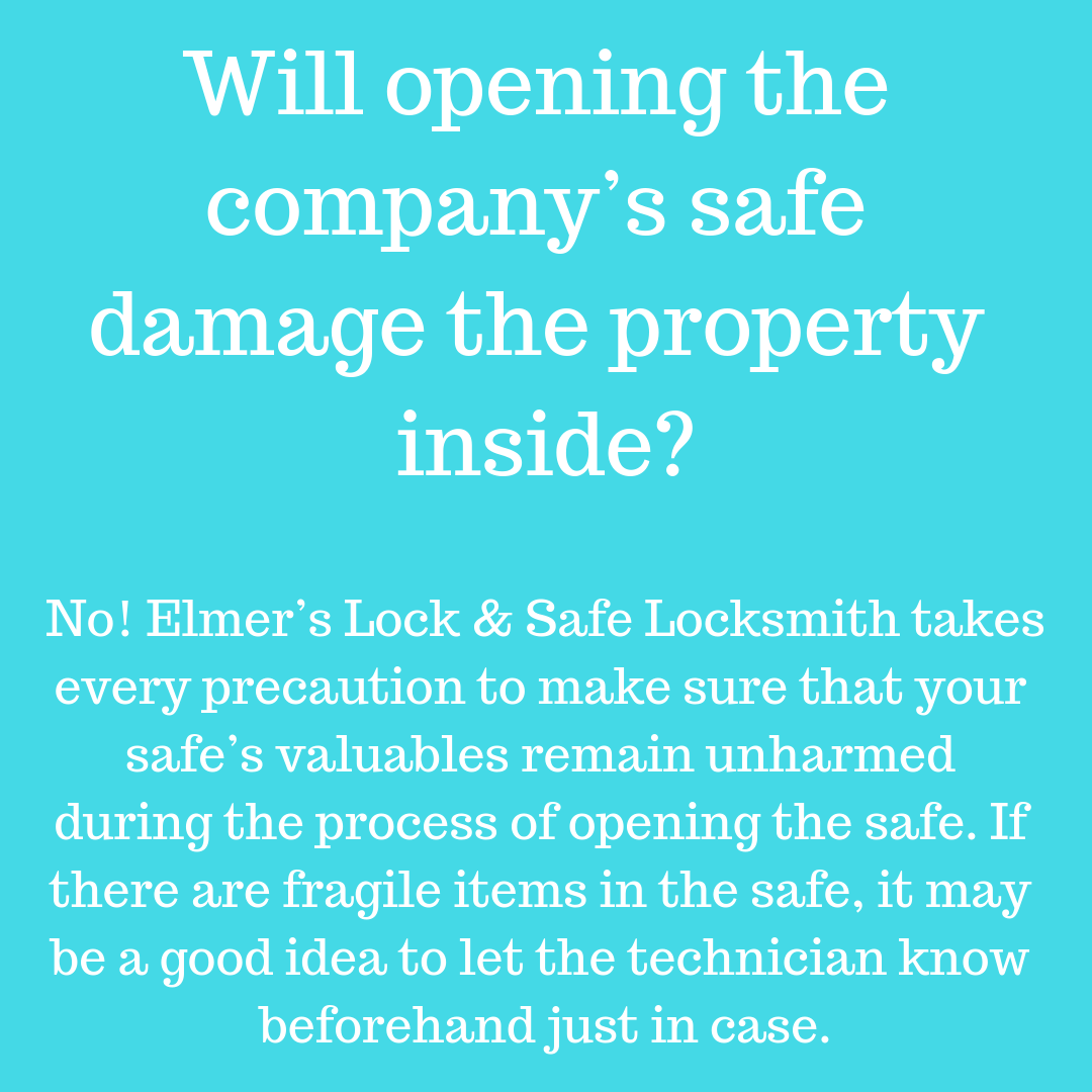 If you’re having problems with your safe, Elmer’s Lock and Safe is the only call you’ll ever have to make. If you’ve forgotten your combination, can’t remember how to change your combination, need safe repair, or need a new safe installed and set up, we’ve got you covered.